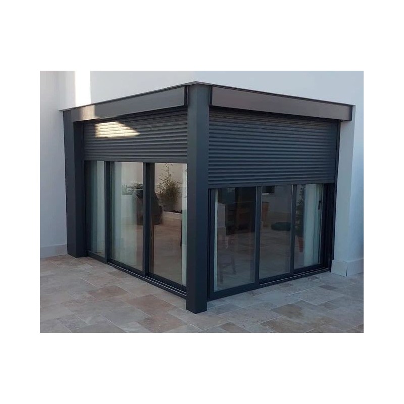 El cajón para intemperie, también de aluminio, garantiza una integración elegante en la fachada y facilita el montaje sin necesidad de obra interior. Gracias a su diseño robusto, es perfecta tanto para viviendas como para locales que buscan aislamiento térmico, privacidad y cierta seguridad.