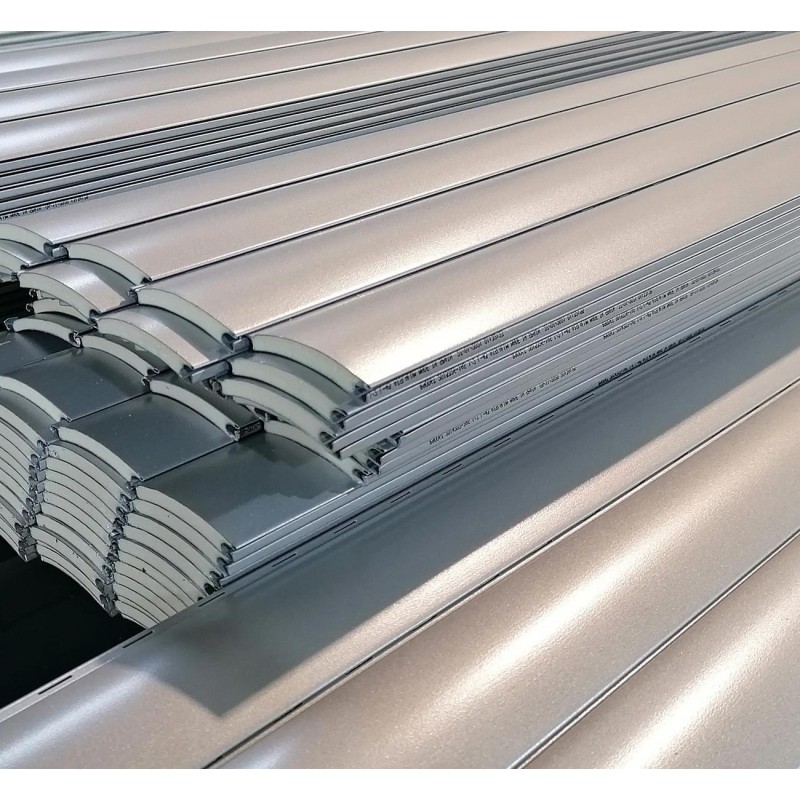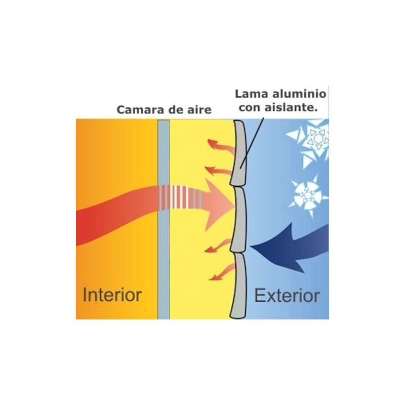 Persiana de aluminio con motor, eje y soportes para estos. Los sistemas de accionamiento puedes seleccionarlos. Ideales para patios o terrazas interiores.